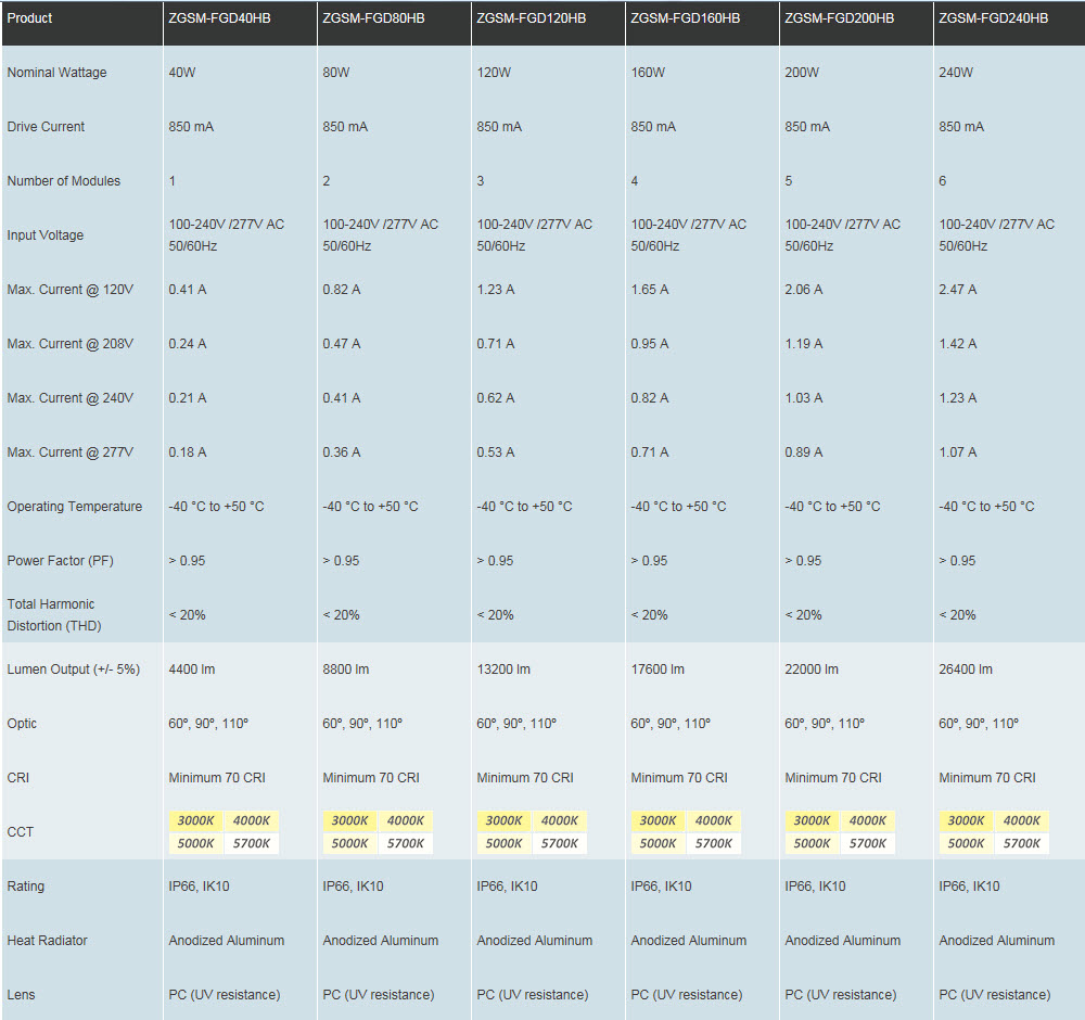 ZGSM® H-serija LED reflektori koristite vrlo velik svijetlosni učinak s LUMILEDS® LUXEON TX svjetlosnim izvorom i vrlo pouzdan HLG serije Mean Well® driverom